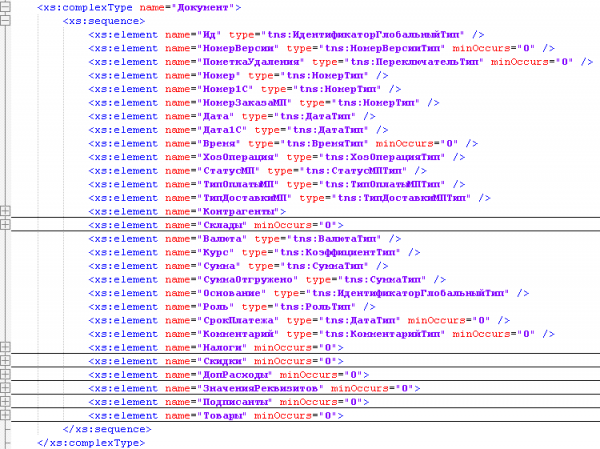 На всех этапах обмена используется xml документы. Для обмена документами используется схема XSD, где содержится описание, передаваемых типов.
